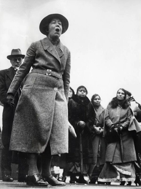 This photo was taken October 4, 1911 at Waterloo Station, London and is accessible at https://commons.wikimedia.org/wiki/File:Britain_Before_the_First_World_War_Q81490.jpg Emmeline Pankhurst was about to leave for a lecture tour of the USA and Canada.