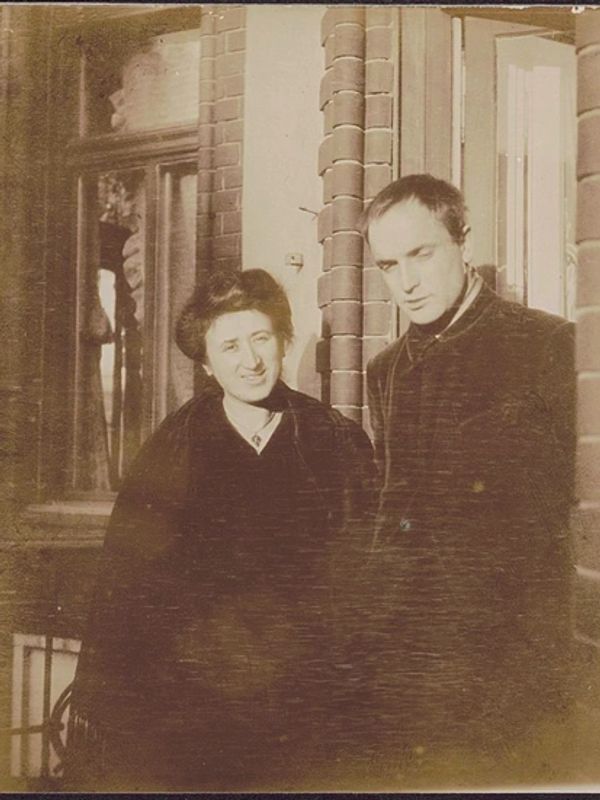 Rosa Luxemburg and the son of Clara Zetkin, Costia Zetkin, with whom she was having an affair. This photo was taken in 1905 and is accessible at https://commons.wikimedia.org/wiki/File:Rosa_Luxemburg_and_Kostja_Zetkin_in_1909.jpg