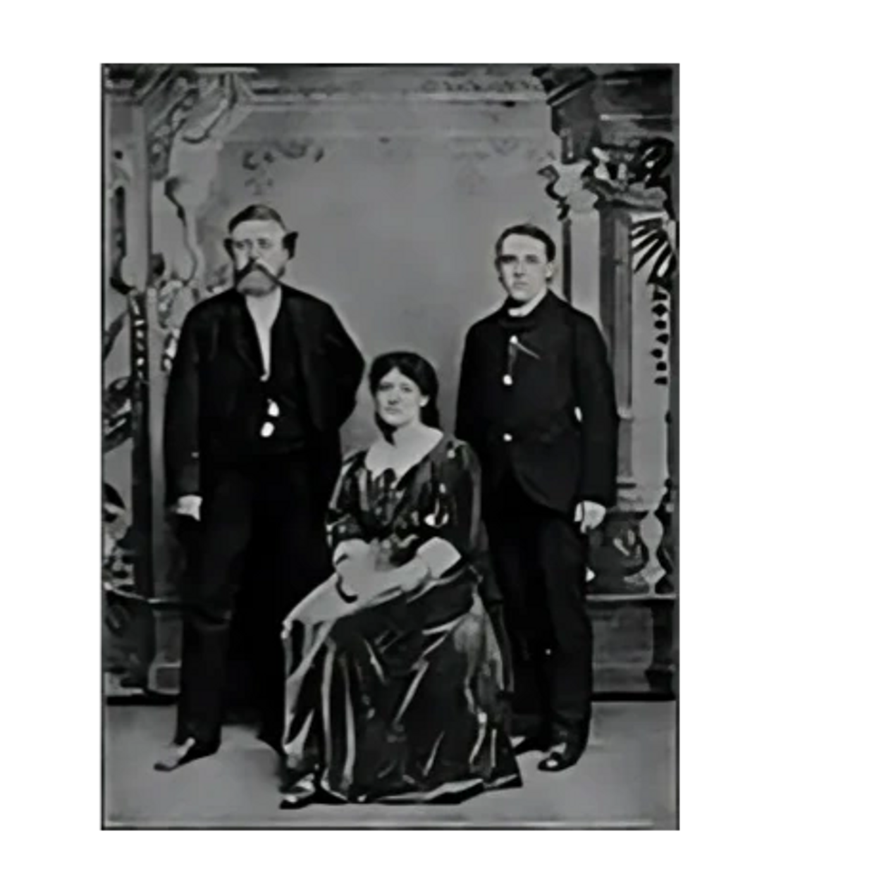Eleanor Marx (middle) with Socialist leader Wilhelm Liebknecht (left) and Edward Aveling (right) photographed in New York while on their tour to America. This photo was taken in 1886 and is accessible at https://commons.wikimedia.org/wiki/File:Eleanor_Marx-9.1.jpg