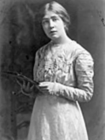 This photo was taken in 1909 and is accessible at https://commons.wikimedia.org/wiki/File:Sylvia_Pankhurst_1909.jpeg
